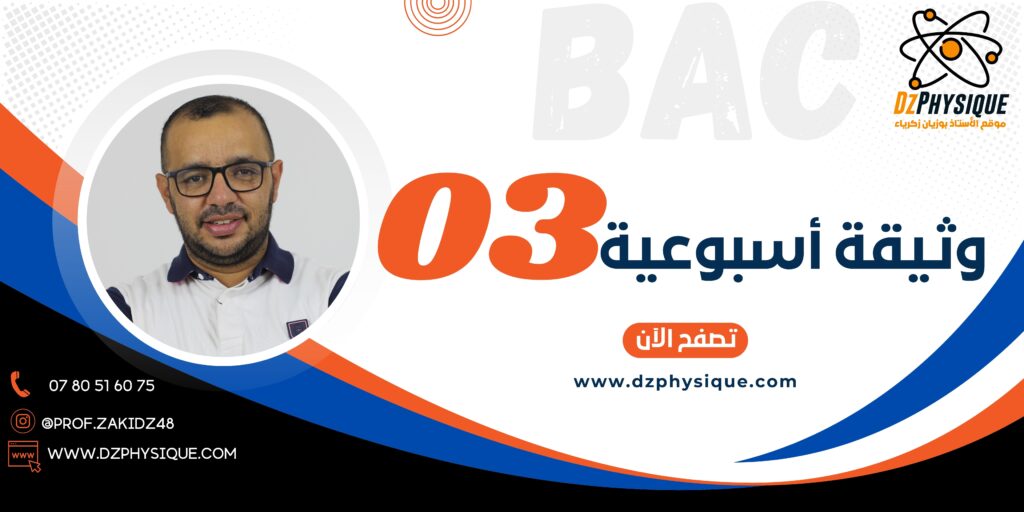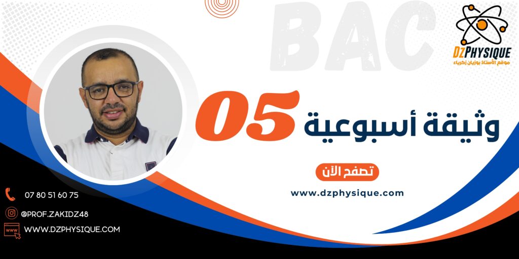تحتوي الوثيقة 05 على ثلاث تمارين منها 02 تمارين خاصة بتطور جملة ميكانيكية (وحدة02) أما التمرين الأخير فهو خاص بالمتابعة الزمنية لتحول كيميائي في وسط مائي (وحدة01)، حاولوا في التمارين ريثما يتم تجهيز الحل على قناة اليوتيوب ان شاء الله الوثيقة رقم 05 https://youtu.be/j7nRmWJJeMohttps://youtu.be/pDg7lv0UvtIhttps://youtu.be/nrGnj8y8R6M