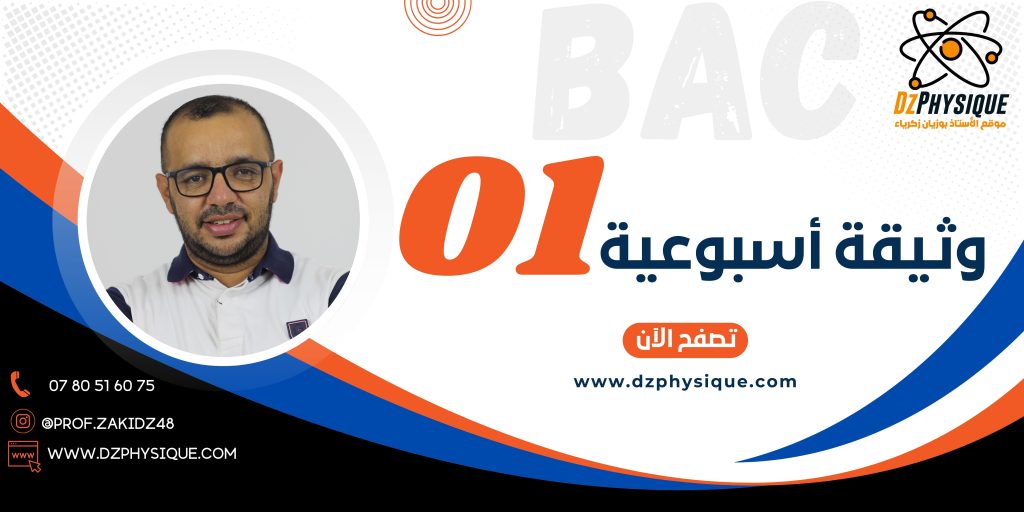 تحتوي الوثيقة على 04 تمارين ثلاث تمارين خاصة بتدريبات حول المفاهيم الأساسية في الميكانيك، أما التمرين الأخير فهو خاص بالمتابعة الزمنية لتحول كيميائي في وسط مائي، حاول في التمارين ريثما تم تجهيز الحلول التي ستنشر هنا على نفس الرابط وأيضا على قناة اليوتيوب. الوثيقة رقم 04 https://youtu.be/W480wB4_EhMhttps://youtu.be/PglzV-9PfmY